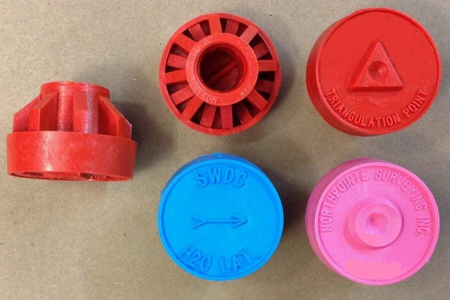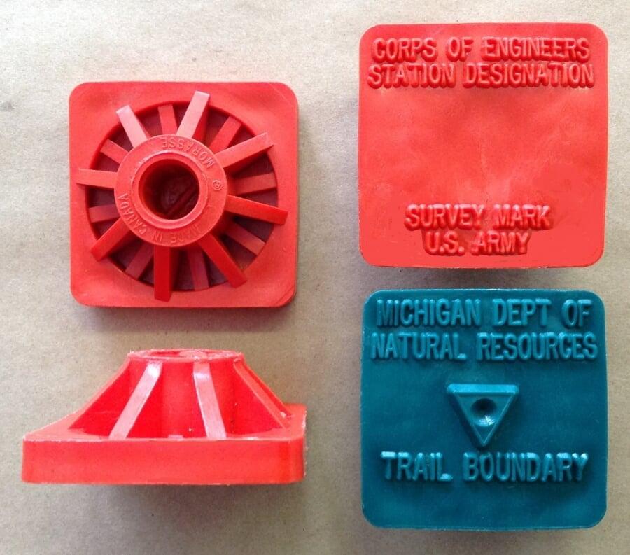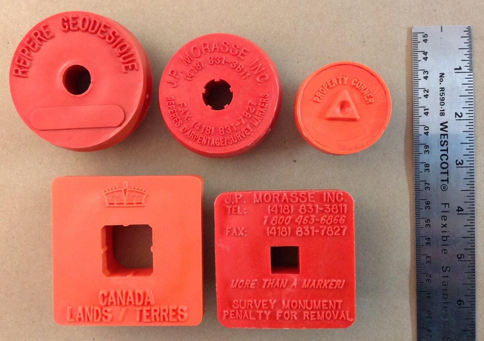 Nous vous offrons une grande variété de repères d'arpentage pour répondre à vos besoins spécifiques. Notre médaillon est conçu à partir de polyéthylène haute densité. Le lettrage en relief vous garantie une visibilité permanente. Offert dans une panoplie de format et de couleur, vous saurez trouver ce que vous recherchez. Tous nos médaillons sont disponible déjà assemblés sur tige ou seul. Cliquer sur les photos pour agrandir.