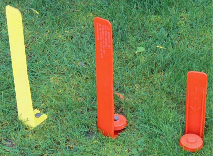 Enfin un piquet témoin qui se fixe directement sur la tige. Vos coordonnées peuvent y apparaître, c'est comme laisser sa carte d'affaire sur le terrain. La large flèche est idéale pour visée arrière. Disponible en format de 23 cm ou 39 cm. Les couleurs peuvent s'harmoniser à vos repères.