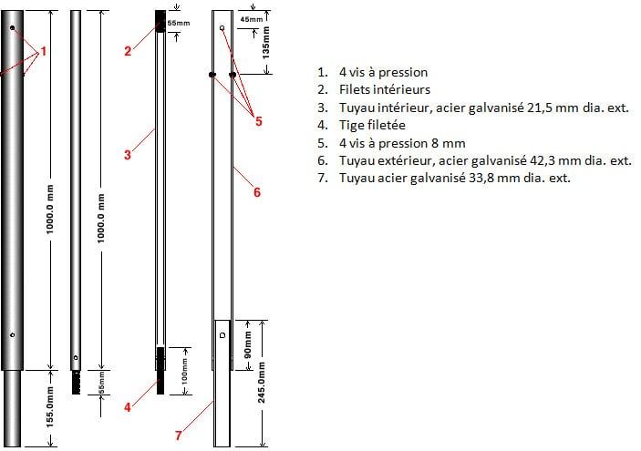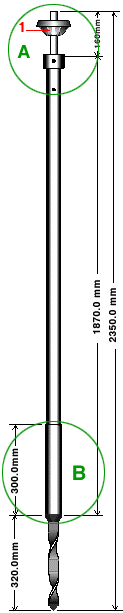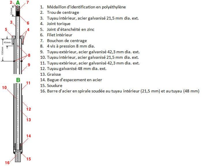 Tuyau galvanisé 20mm diamètre intérieur, 25mm diamètre extérieur. Ce repère de 1,65m de longueur est muni d'une pointe vrillée qui facilite son enfoncement dans le sol. Un médaillon, muni d'une capsule magnétique pour en faciliter le repérage et portant des inscriptions termine l'ensemble.